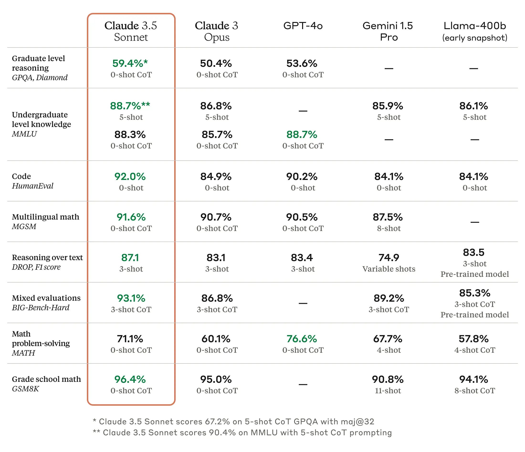 Last week Anthropic launched Claude 3.5 Sonnet, with particularly notable improvements in graduate-level reasoning, code, and mixed evaluations (BIG-Bench Hard, which, contrary to popular belief, is not what I say when watching guys bench press at the gym, but rather 23 particularly challenging BIG - Beyond the Imitation Game -Bench tasks).