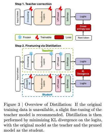 The authors reference a good survey paper of LLM model compression methods (IEEE) and a paper from a few years ago on sparsity in deep learning (ETH Zurich). Generally, pruning removes “unimportant components” (neurons, layers, etc.) in a “pre-designed” model, reducing memory usage and cost, but isn’t totally effective on its own for LLMs: