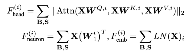 The authors propose a purely activation-based importance estimation strategy, specifically compute activation-based importance scores for (attention) heads, neurons, and embedding channels: