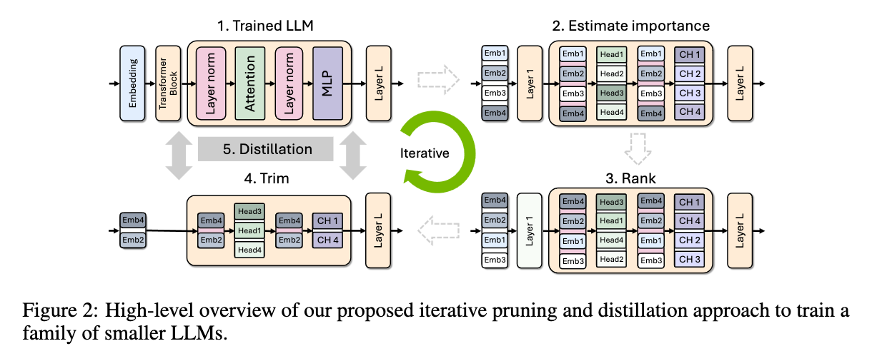 Finally, their strategy is iteratively alternating between pruning and importance estimation for a given axis (or combination of axes) — iterative importance.